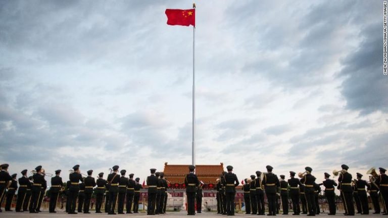 A flag-raising ceremony to celebrate the 72nd anniversary of the founding of the People’s Republic of China is held in...