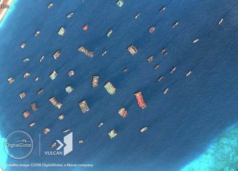 Chinese fishing vessels massed at Subi Reef in the Spratly Islands